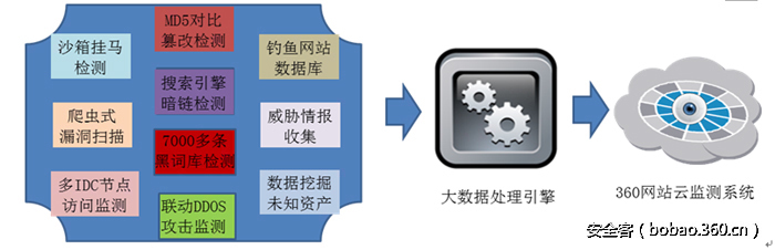 360在Web安全方面以云防护服务为核心,以云检测和云监测服务为辅助,为用户网站在云端提供事前扫描+事中防护+事后监测的全方位的网站安全服务。