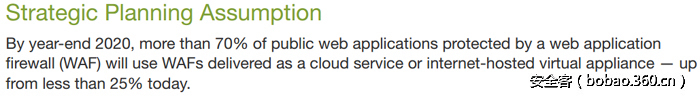 知名第三方咨询机构Gartner预测到2020年70%的网站防护将会采用SaaS化云服务的方式提供,云端防护由于其拥有独有的大数据云端协同联动防护、分布式抗拒绝服务等特点会越来越受到企业用户的青睐。网站安全云端防护的未来是光明的。