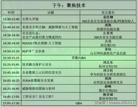 为了和更多的中国企业分享网络安全行业的最新趋势和先进技术,由公安部网络安全保卫局指导,中国计算机学会主办,中国计算机学会计算机安全专业委员会、绿盟科技、360企业安全集团联合承办的第九届RSA2017热点研讨会。