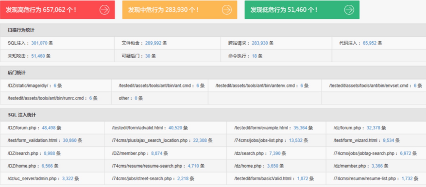 7.日志数据噪声(这词我也不知道用得对不对)上文提到过,攻击者可能会使用扫描器进行大量的扫描,此时日志中存在大量扫描行为,此类行为同样会被恶意行为关键字匹配出,但是此类请求我们无法得知是否成功扫描到漏洞,可能也无法得知这些请求是扫描器发出的,扫描器可使用代理IP、可进行分时策略、可伪造客户端特征、可伪造请求来源或伪造成爬虫。此时我们从匹配出的海量恶意请求中很难得出哪些请求攻击成功了