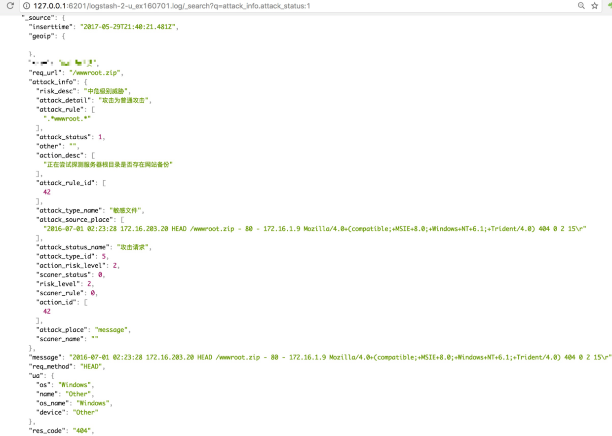 聪明的你肯定想到了,如果此时加上时间条件,状态码等条件就能查询到最近可能成功的SQL注入攻击了,当然实际情况中,仅仅只依靠状态码来判断攻击是否成功是不可行的,因为很多时候请求的确成功了,但并不能代表攻击也成功了,如请求一个静态页面或者图片,会产生这样一个请求:/logo.png?attack=test';select//1//from/**/1,此时请求状态码为200,但是此注入攻击并没有得到执行,实际情况中,还会有更多情况导致产生此类的噪声数据。