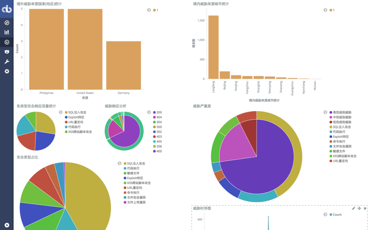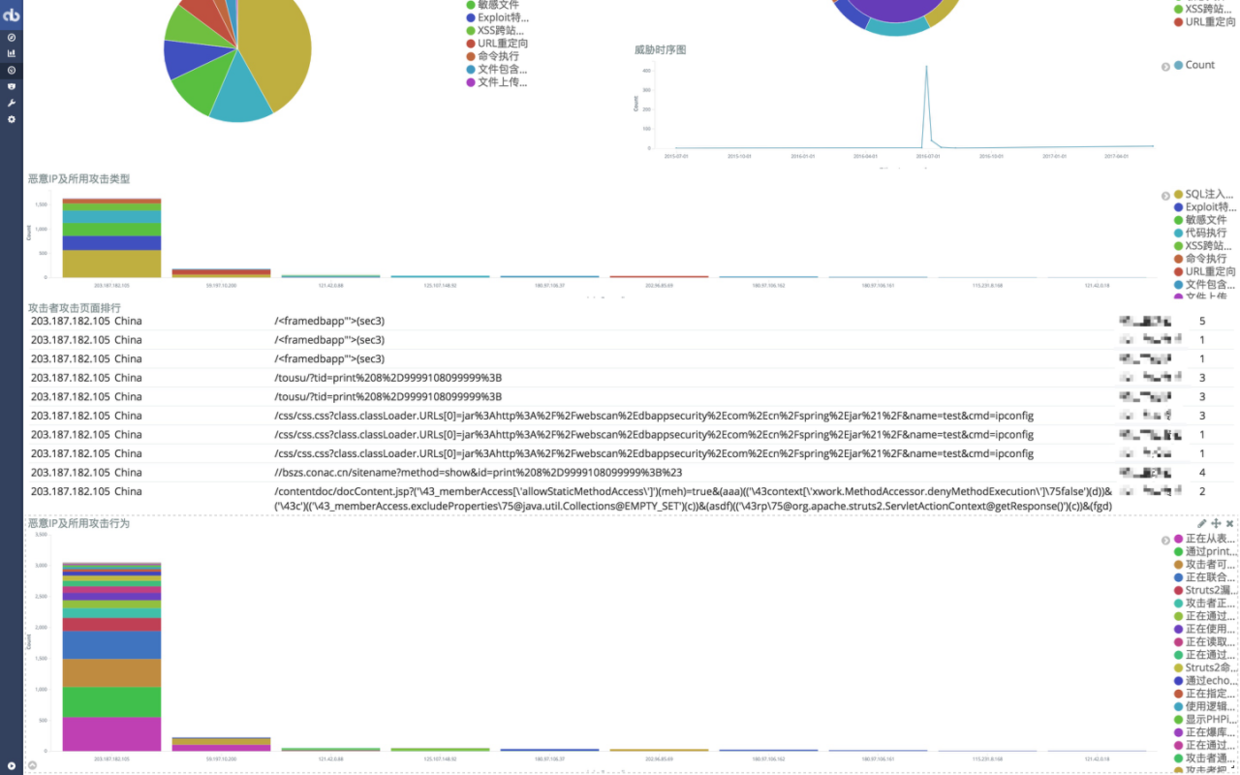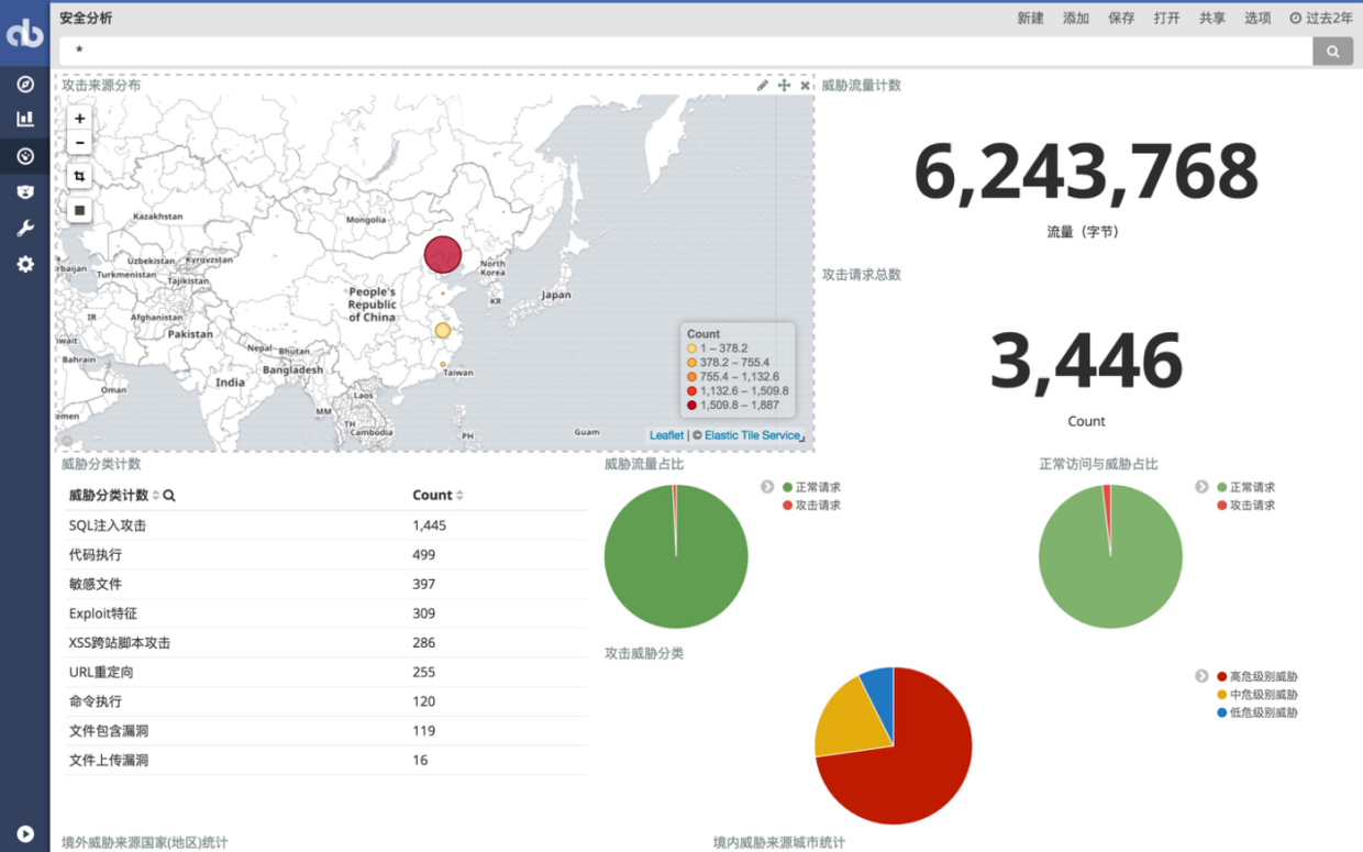 前段时间,有客户联系到我们,说他们买了日志易的产品,但是其中对安全的监控比较缺乏,让我们能不能在日志易的基础上添加一些安全规则,建立安全告警,他们要投放到大屏幕,然后来实时监控各个服务器的安全状态。然后我就大概看了一遍日志易的产品,安全方面的分析,基本为0.
