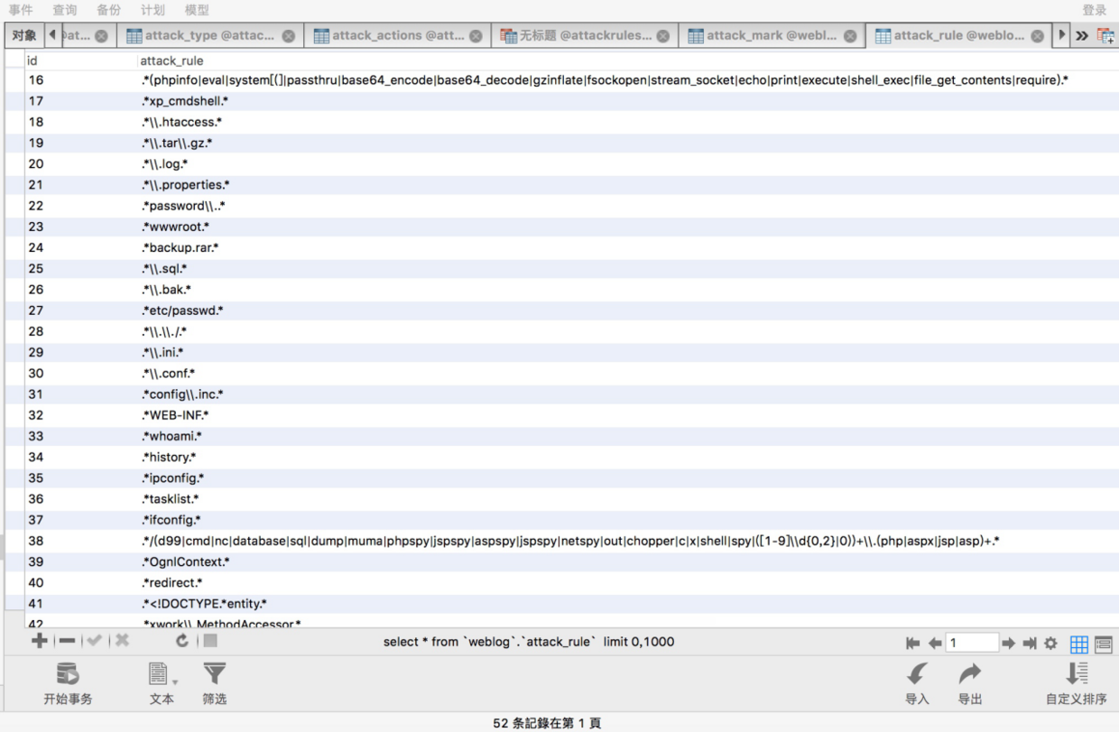 攻击规则匹配,通过正则匹配日志中的攻击请求