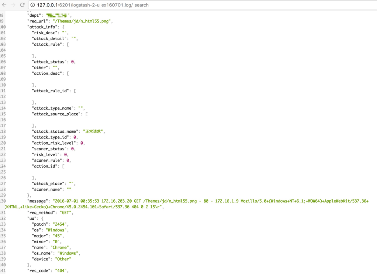 在说如何进行分析之前,我们先来了解一下Web服务器中产生的日志是什么样子.我们以Nginx容器为例: