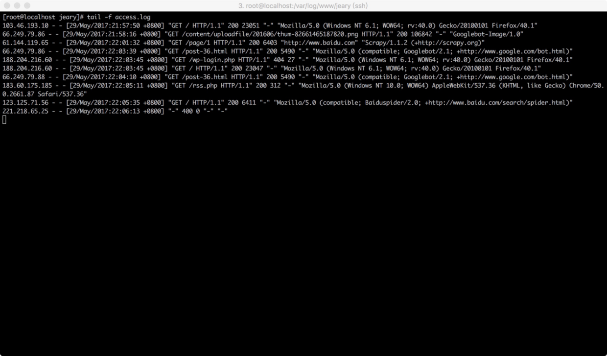 00:01 GET http://localhost/index.php 9.9.9.9 200 [正常请求]