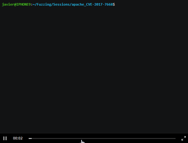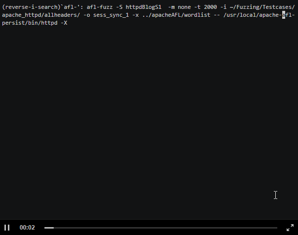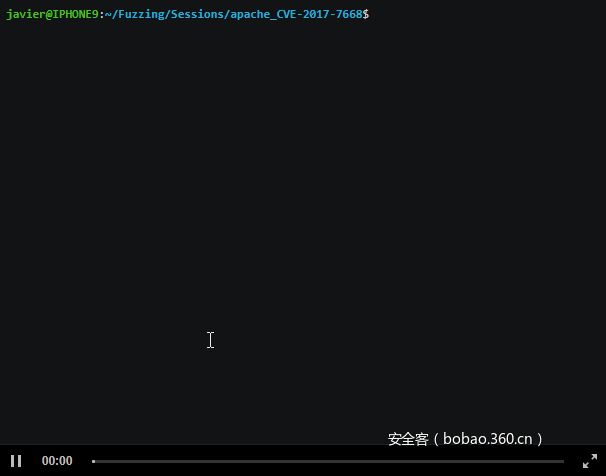 安装完上面这些依赖组件并配置好Apache服务器之后,我们就可以准备开始对Apache httpd进行模糊测试了。你可以从下面这段演示视频中看到,我们只需要对测试用例进行小小的改进就能够迅速导致程序出现崩溃: