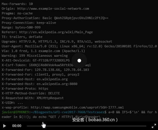 这些只是我使用AFL软件时所用的测试用例,而且我也没有使用非常复杂的测试用例(覆盖率不高)。为了能够设计出可以覆盖所有Apache httpd服务器普通安装场景的测试用例,我想出了一种非常简单的方法从维基百科的Header列表中爬取所有Header的方法。