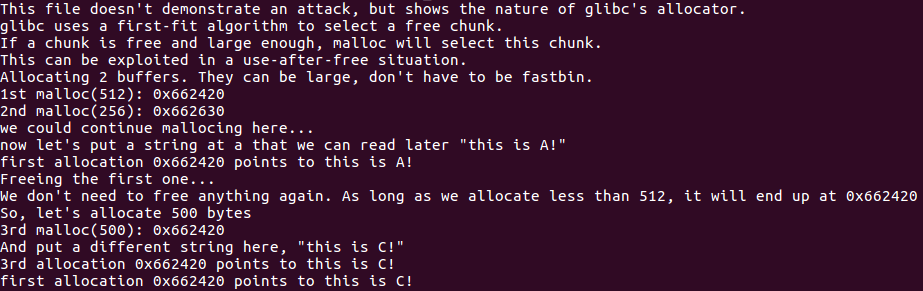 关于first-fit没太多可讲的,这里也解释得很清楚是咋回事.不过这里提到了uaf,网上关于uaf的文章也很多,我就不多说了.在这里推荐一篇吧.