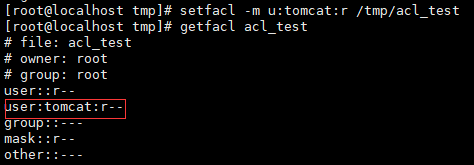 假设A用户名为tomcat,改文件只允许属主root和其他用户tomcat访问(只读) 设置acl前,tomcat用户读取操作被拒绝。