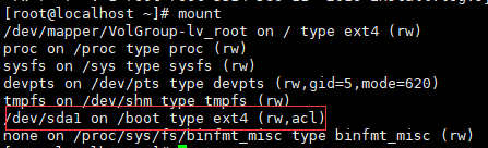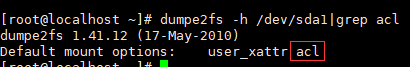 dumpe2fs -h /dev/sda1|grep acl(根据自己磁盘情况更改)