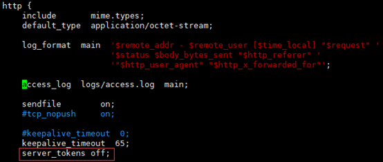 配置文件nginx.conf中http段添加server_tokens off,但此方法只能隐藏版本号,服务信息还是可以看到的。