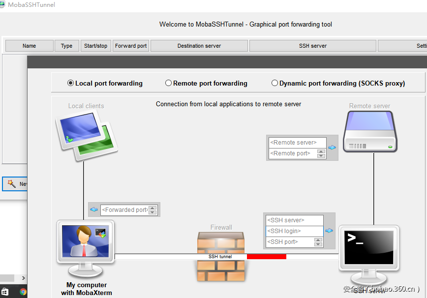 还有一个非常方便的ssh端口转发功能,支持本地、远程、动态转发。