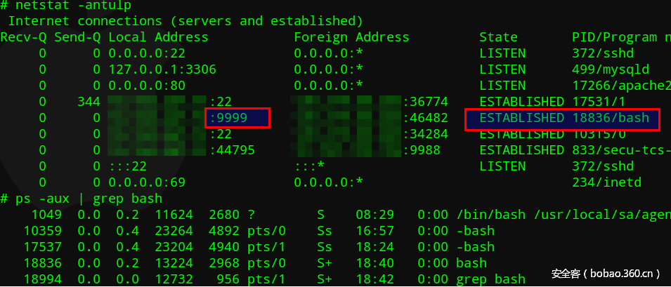 例子:通过端口和bash发现可疑进程