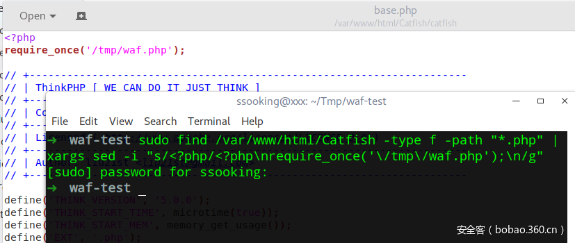 如果我们想给web目录文件添加自定义waf脚本,其实可以用一条命令解决,以php为例: