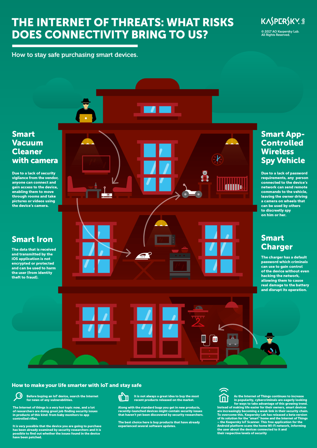 黑色星期五及网络星期一(Cyber Monday,也叫剁手星期一)都是大家疯狂购物的节日。厂商会将大量各类产品推广到市场中,其中也包括许多新潮的联网设备,他们保证这些设备可以让广大群众的生活更加轻松、快乐以及舒适。作为卡巴斯基实验室中的一员,我们与世界上其他人一样,也属于狂热的剁手一族,但即使在大促销时节,我们依然关注的是物联网(Internet of Things, IoT)设备。设想一下,如果我们购买了一台咖啡机,但这台咖啡机会将我们家庭或公司的Wi-Fi密码透露给匿名黑客,或者我们使用了某台婴儿监视器,但这款设备会将家庭日常活动在线直播给你不想分享的某个人,这些情况肯定不会那么有趣。