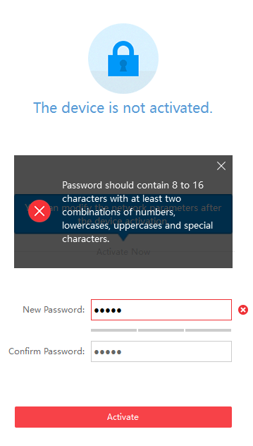 在此之前,这个厂商出售的所有摄像头都带有默认出厂账户及默认密码“12345”。当然,用户一般不会修改这个密码。2016年,在安全问题方面该厂商成为了行业翘楚,因此他们开始供应处于“未激活”模式下的摄像头。在激活以前,用户无法使用摄像头。激活过程中用户需要创建密码,设置网络参数。此外,设备会检查密码是否满足基本的复杂度要求(长度、字符种类、包含数字及特殊字符)。用户可以通过本地网络,使用任何主机访问摄像头,完成激活操作。