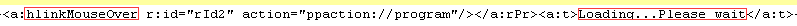 当PowerPoint演示文稿打开时,它将显示文本“正在加载…请等待”作为超链接,显示为用户的蓝色超链接,当用户将鼠标悬停在此文本上,会导致PowerPoint执行PowerShell。但是如果开启了受保护视图安全功能,Office会通知用户风险,用户如果启用内容,PowerShell才会代码被执行。