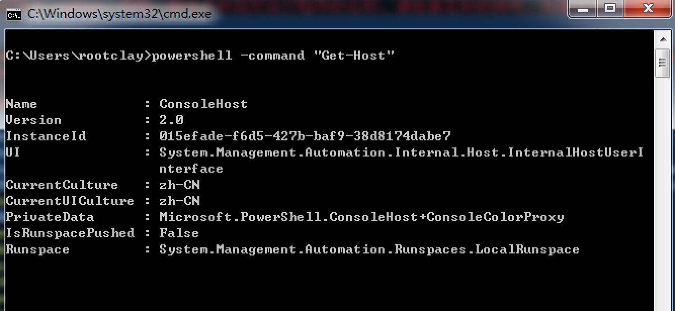 那么对于我们的安全人员来说我们用什么版本呢?毫无疑问是v2,为什么呢,应为在win7当中默认安装了v2,而且之后的版本都是兼容v2的,v1版本所有的功能对于我们的需求很多都不能满足,所以v2成为了我们目前来说独一无二的选择,通过下面的方式我们可以看到我们的powershell的版本与一些详细的信息,后面我们的代码,大多都是以v2.0来讨论的。