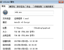 从样本属性看,该样本是AutoIT脚本的解释器。是AutoIT脚本封装成exe后用来运行脚本的。所以jvc-qek就是样本核心的脚本文件。