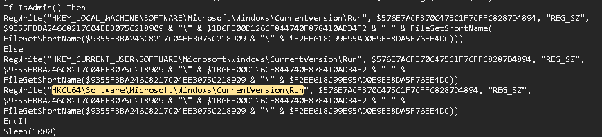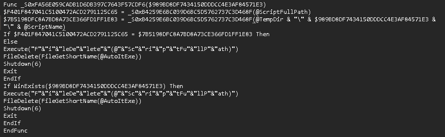 脚本代码也会检查系统进程中是否有avastui.exe,并通过sleep函数躲避杀软的检测。然后会检查当前temp路径下是否存在34772436目录,如果条件不满足,脚本会删除目录下的文件并立即强制重启系统。