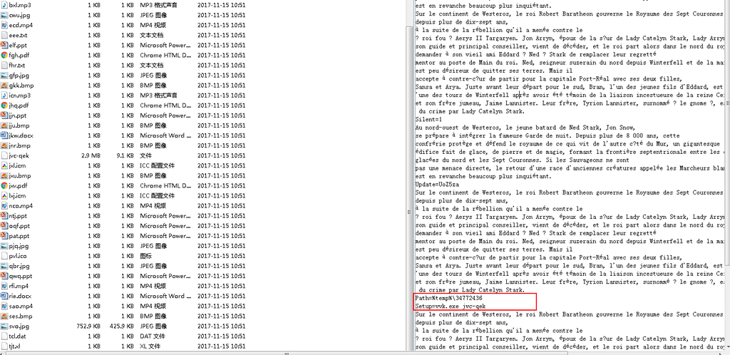 混淆代码由法语写成,叙述的是权力的游戏(Game of Throne)的故事简介。