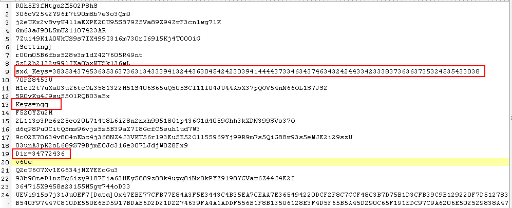 脚本代码首先读取svo.jpg,用文本方式打开这个jpg文件,发现是一个混淆过的配置文件,用于配置脚本的各种功能。我们可以看到几个字段。