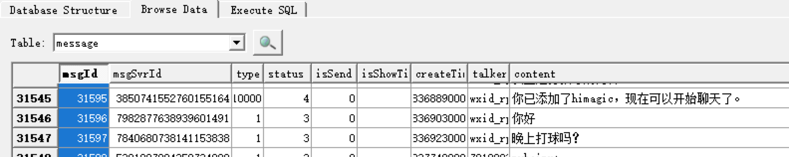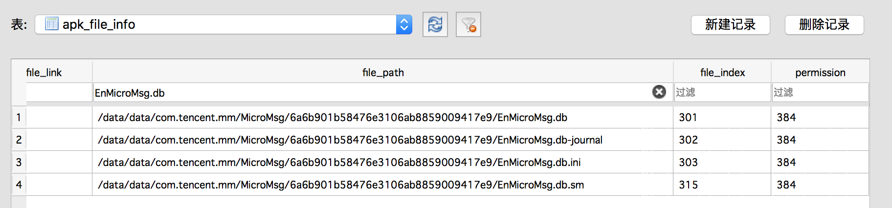 根据file_index拼接处完整EnMicroMsg.db. 在从shared_prefs中检索出uin得到db的解密秘钥.即可查看聊天记录.