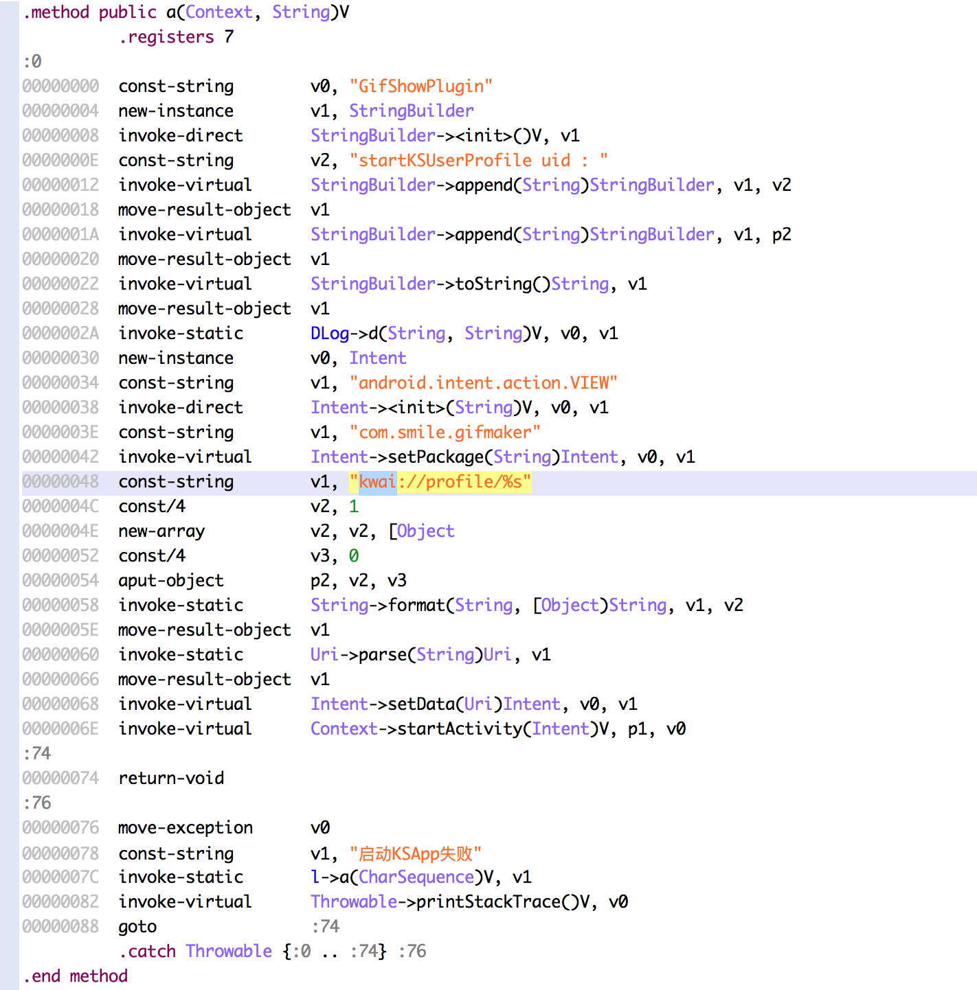 通过快手的scheme伪协议kwai://profile/uid启动到需要互粉用户的个人界面