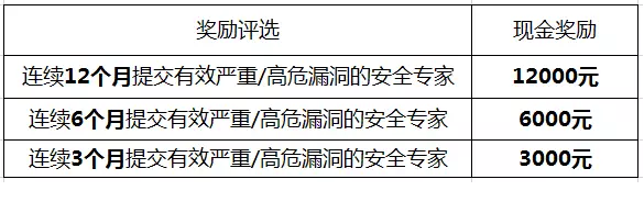 算出排名第一的白帽子将获得奖励金额*10的现金奖励。