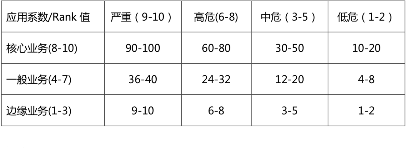 Rank值为 100 = 基础贡献值10(严重)X 应用系数10(核心应用)