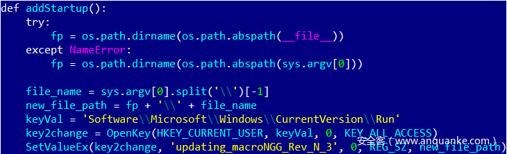最后,恶意软件会修改“Software \ Microsoft \ Windows \ CurrentVersion \ Run”注册表项创建一个开机启动项。