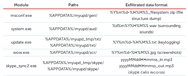 我们发现多个组件构成Windows平台的整个间谍软件系统。