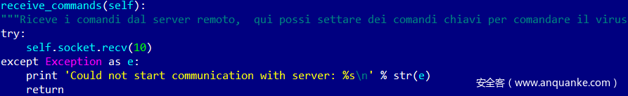 释义:“Receive commands from the remote server, here you can set the key commands to command the virus”
