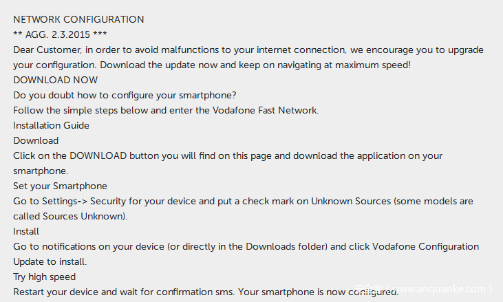 恶意软件代码和功能已经改变了很多次,从简单的未混淆的恶意软件到复杂的多阶段间谍软件,攻击者可以完全远程控制被感染设备。该类间谍软件可以获取设备的通话记录,文本消息,地理定位,周围音频,日历事件和设备上的其他存储数据(如社交软件WhatsApp,Facebook等信息)。