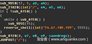 该模块的主要目的是通过连接C&C服务器的套接字来提供设备上的反向shell功能。
