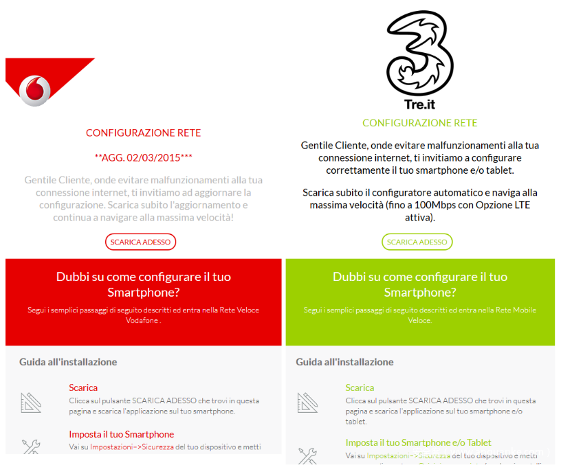 所有观察到的登陆页面都通过他们的域名和网页内容来模拟移动运营商的网页。