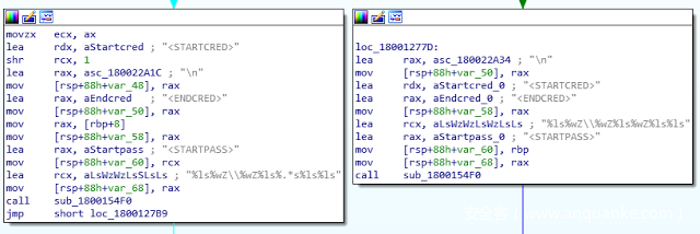 为了实现横向渗透,恶意软件需要有效的凭据。恶意软件使用了2个窃取器(下文会介绍)以及二进制文件中硬编码的凭据来完成这一任务。