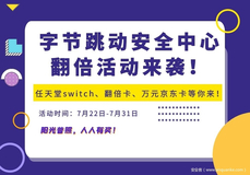 ByteSRC 7月福利第三弹—翻倍挖挖乐活动!翻倍卡、京东卡、任天堂switch、周边礼品,统统备好!